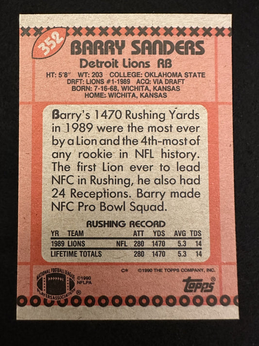 1990 Topps Barry Sanders (#352) NM HOFer, Heisman, Lions Great ^GRUMPYBUCK^