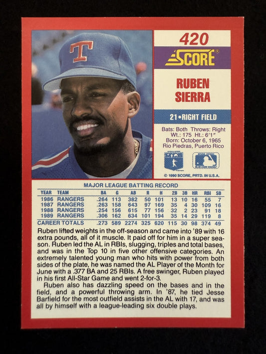 1990 Score Ruben Sierra (#420) NM, Rangers Great, Switch-Hitter ^GRUMPYBUCK^