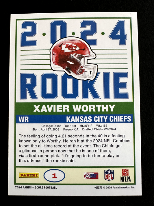 2024 Score Xavier Worthy (#1) NM Rookie Card, Texas Longhorn ^GRUMPYBUCK^