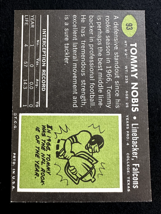1969 Topps Tommy Nobis (#93) NM Pro Bowler, Longhorn Great ^GRUMPYBUCK^