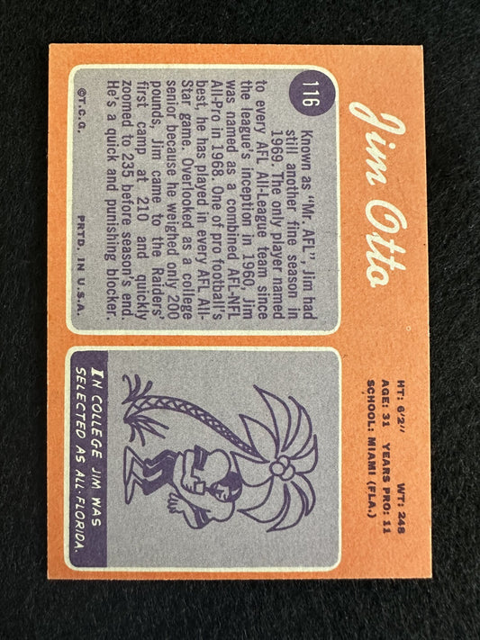 1970 Topps Jim Otto (#116) NM HOFer, Raiders Ironman ^GRUMPYBUCK^