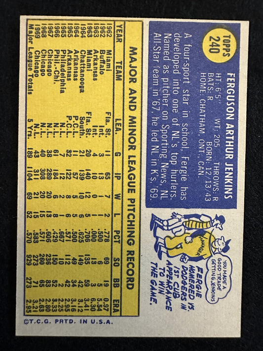 1970 Topps Fergie Jenkins (#240) NM HOFer, Cubs Ace ^GRUMPYBUCK^