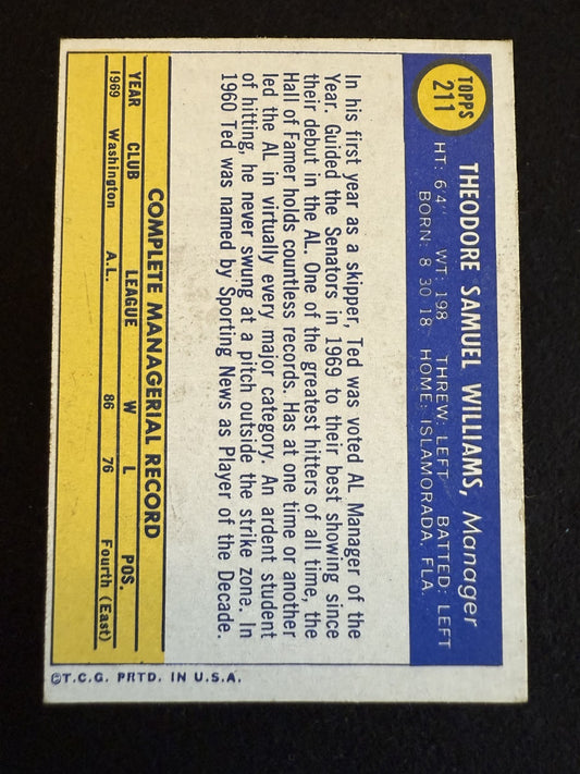 1970 Topps Ted Williams (#211) EX HOFer, Senators Manager Card ^GRUMPYBUCK^
