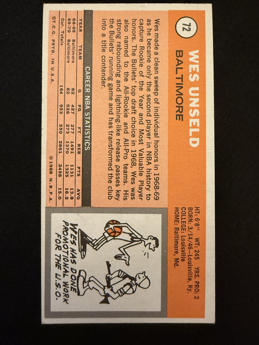 1970-71 Topps Wes Unseld (#72) EX HOFer, Bullets Rebounding Legend ^GRUMPYBUCK^
