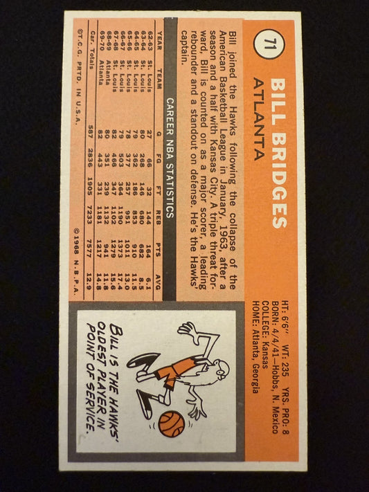 1970-71 Topps Bill Bridges (#71) EX Hawks Forward & Rebounder ^GRUMPYBUCK^