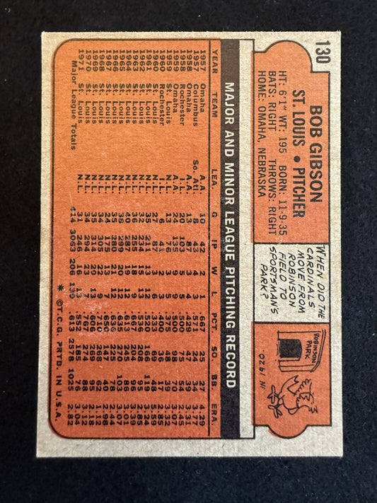 1972 Topps Bob Gibson (#130) EX HOFer, Fireballer, Cardinals Ace ^GRUMPYBUCK^