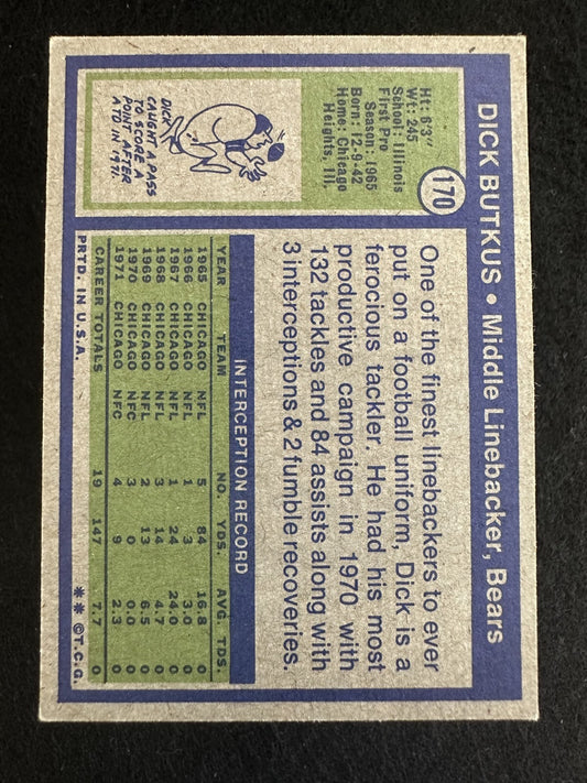 1972 Topps Dick Butkus (#170) EX HOFer, Bears Legend ^GRUMPYBUCK^