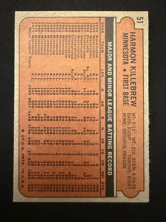 1972 Topps Harmon Killebrew (#51) EX HOFer, Twins Legend ^GRUMPYBUCK^