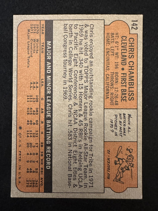 1972 Topps Chris Chambliss (#142) EX Rookie Card, Yankees/Indians ^GRUMPYBUCK^