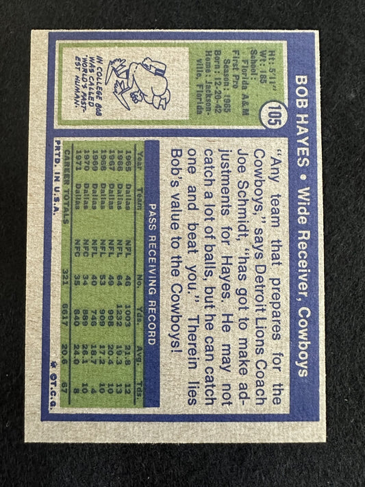 1972 Topps Bob Hayes (#105) NM HOFer, Olympic Gold, Cowboys Star ^GRUMPYBUCK^