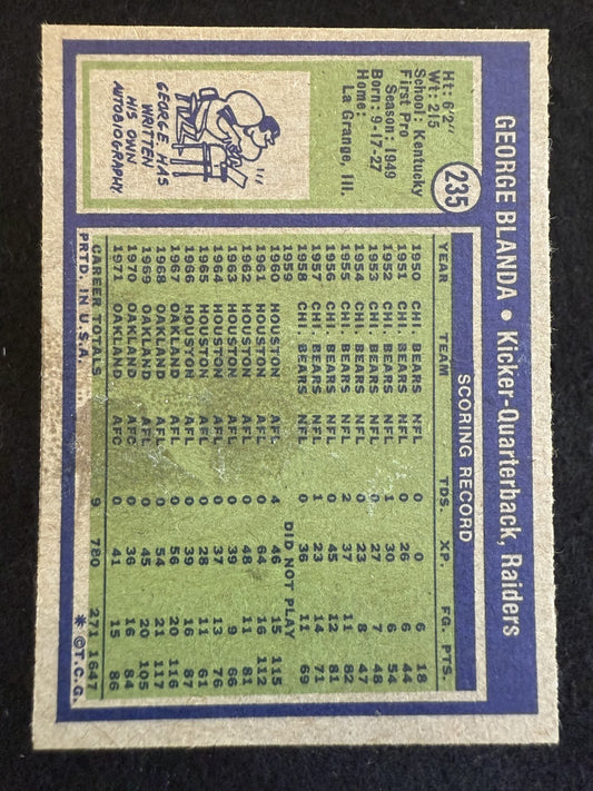 1972 Topps George Blanda (#235) EX HOFer Oilers/Raiders Great ^GRUMPYBUCK^