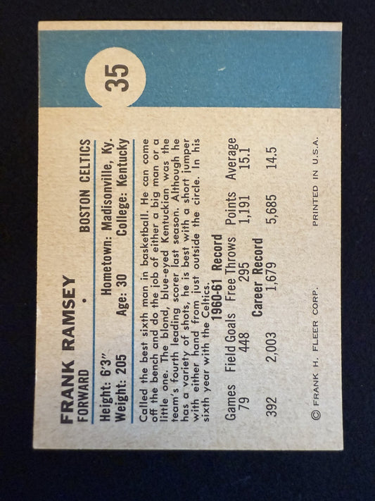 1961-62 Fleer Frank Ramsey (#35) EX Celtics 6th Man Pioneer, HOFer ^GRUMPYBUCK^