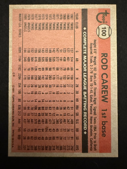 1981 Topps Rod Carew (#100) EX HOFer, Hit Machine ^GRUMPYBUCK^