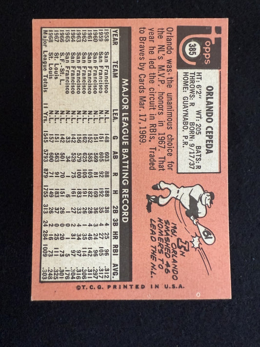 1969 Topps Orlando Cepeda (#385) EX HOFer, Giants Slugger ^GRUMPYBUCK^