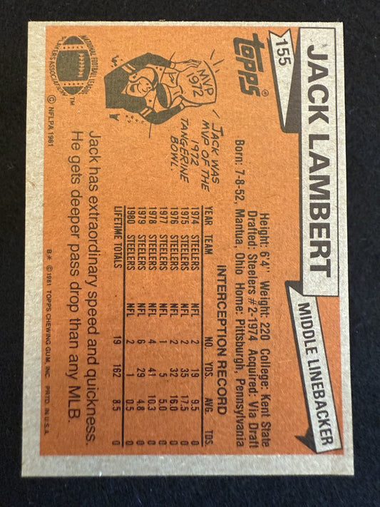 1981 Topps Jack Lambert (#155) EX HOFer, Steelers Great ^GRUMPYBUCK^