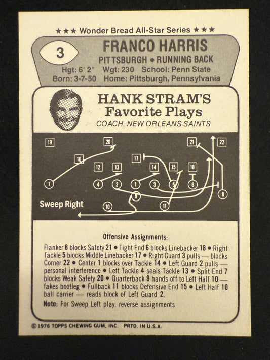 1976 Wonder Bread All-Star Series Franco Harris (#3) EX HOFer ^GRUMPYBUCK^