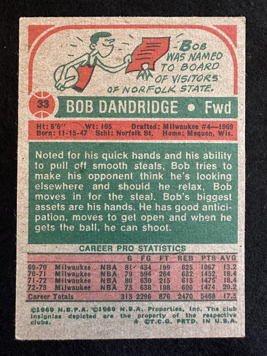 1973-74 Topps Bob Dandridge (#33) VG HOFer, Bucks Champion ^GRUMPYBUCK^