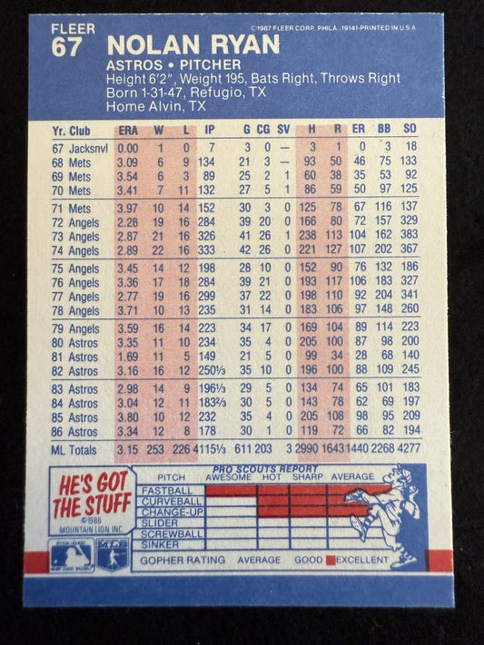 1987 Fleer Nolan Ryan (#67) NM All-Time K Leader, HOFer ^GRUMPYBUCK^
