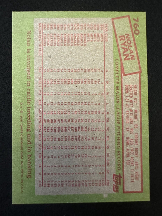 1985 Topps Nolan Ryan (#760) NM HOFer, Strikeout King ^GRUMPYBUCK^