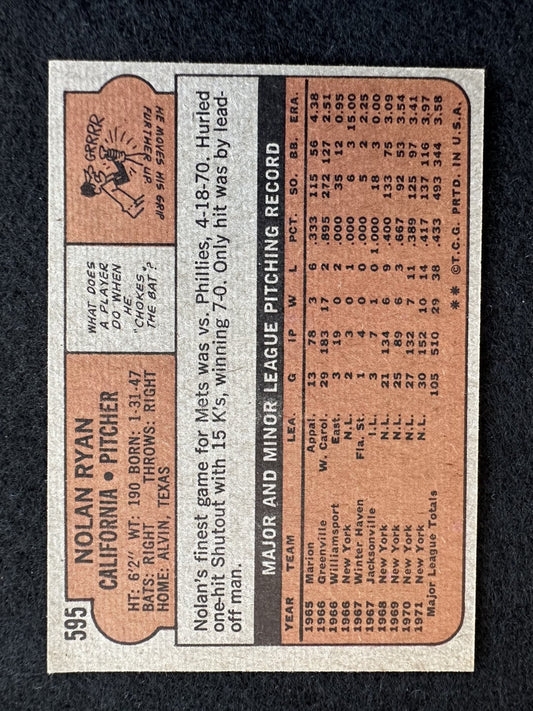 1972 Topps Nolan Ryan (#595) EX HOFer, Angels Fireballer, K King ^GRUMPYBUCK^