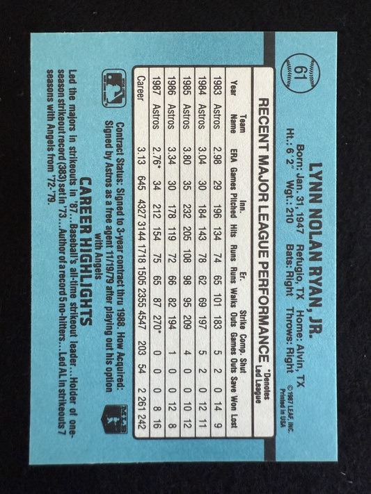 1988 Donruss Nolan Ryan (#61) NM HOFer, Fireballer, Strikeout King ^GRUMPYBUCK^