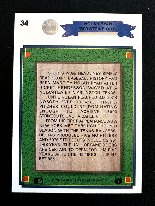 1990 Upper Deck Nolan Ryan 5,000 Ks (#34) NM HOFer, Ryan Express ^GRUMPYBUCK^