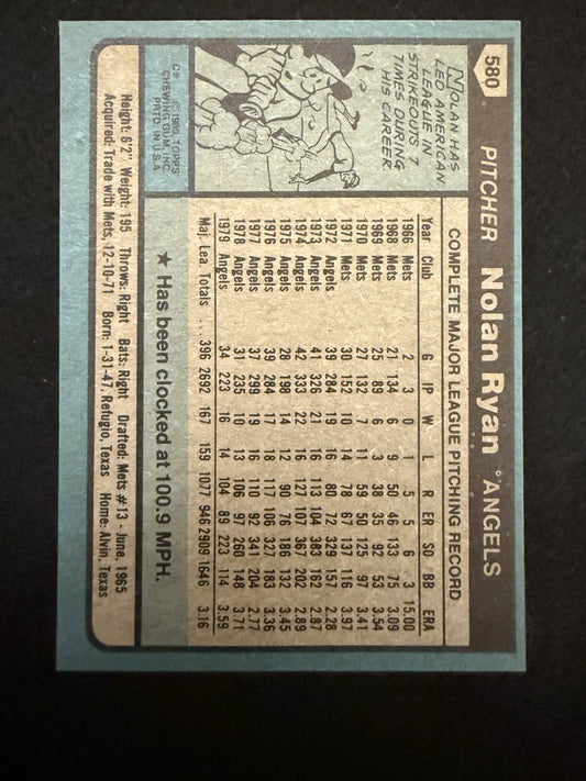 1980 Topps Nolan Ryan (#580) EX HOFer, Angels Fireballer ^GRUMPYBUCK^
