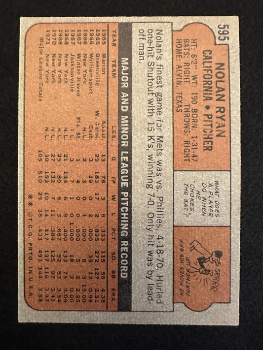 1972 Topps Nolan Ryan (#595) NM HOFer, Strikeout King ^GRUMPYBUCK^