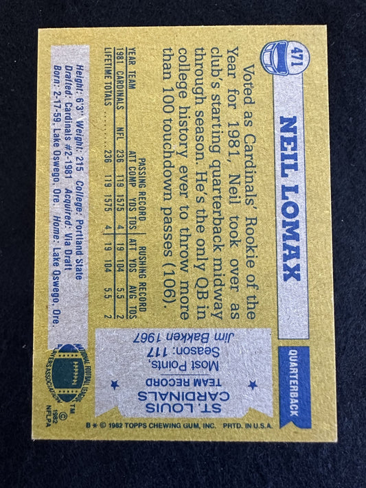 1982 Topps Neil Lomax (#471) NM Cardinals QB, Rookie Card ^GRUMPYBUCK^
