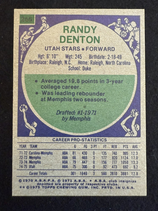 1975-76 Topps Randy Denton (#266) EX ABA/NBA Big Man ^GRUMPYBUCK^