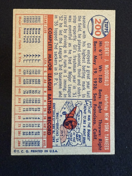 1957 Topps Gil McDougald (#200) EX Yankees Great, WS Champ ^GRUMPYBUCK^