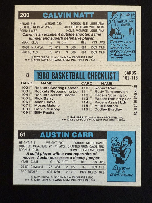 1980-81 Topps Kareem Abdul-Jabbar, Austin Carr, Natt (#200-8-61) NM ^GRUMPYBUCK^
